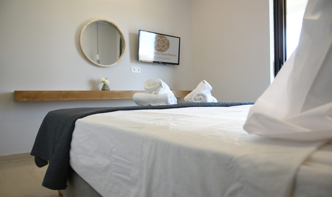 Our 2-room apartments offer a spacious and comfortable home away from home for your stay in Corfu. Whether you’re looking to relax with family or explore the island with friends, these apartments provide the perfect base for your adventures.